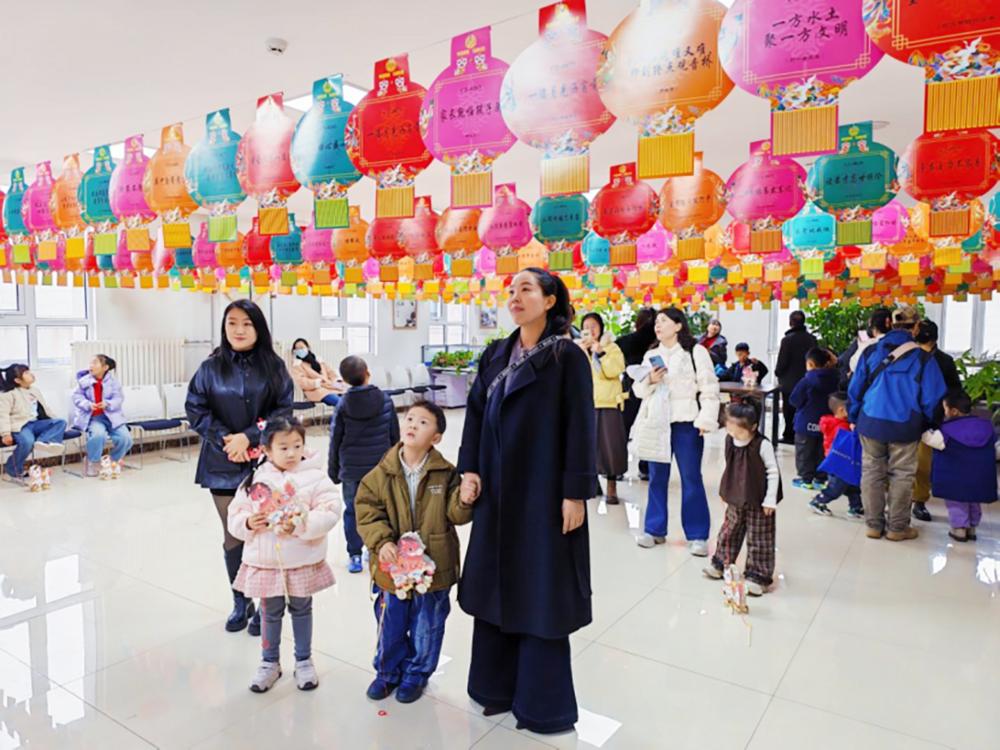 “我今天和媽媽一起做了小馬花燈,還猜對了3個燈謎,拿到了獎品,太開心了!”小朋友關(guān)心琪展示著自己的作品,開心地告訴記者。